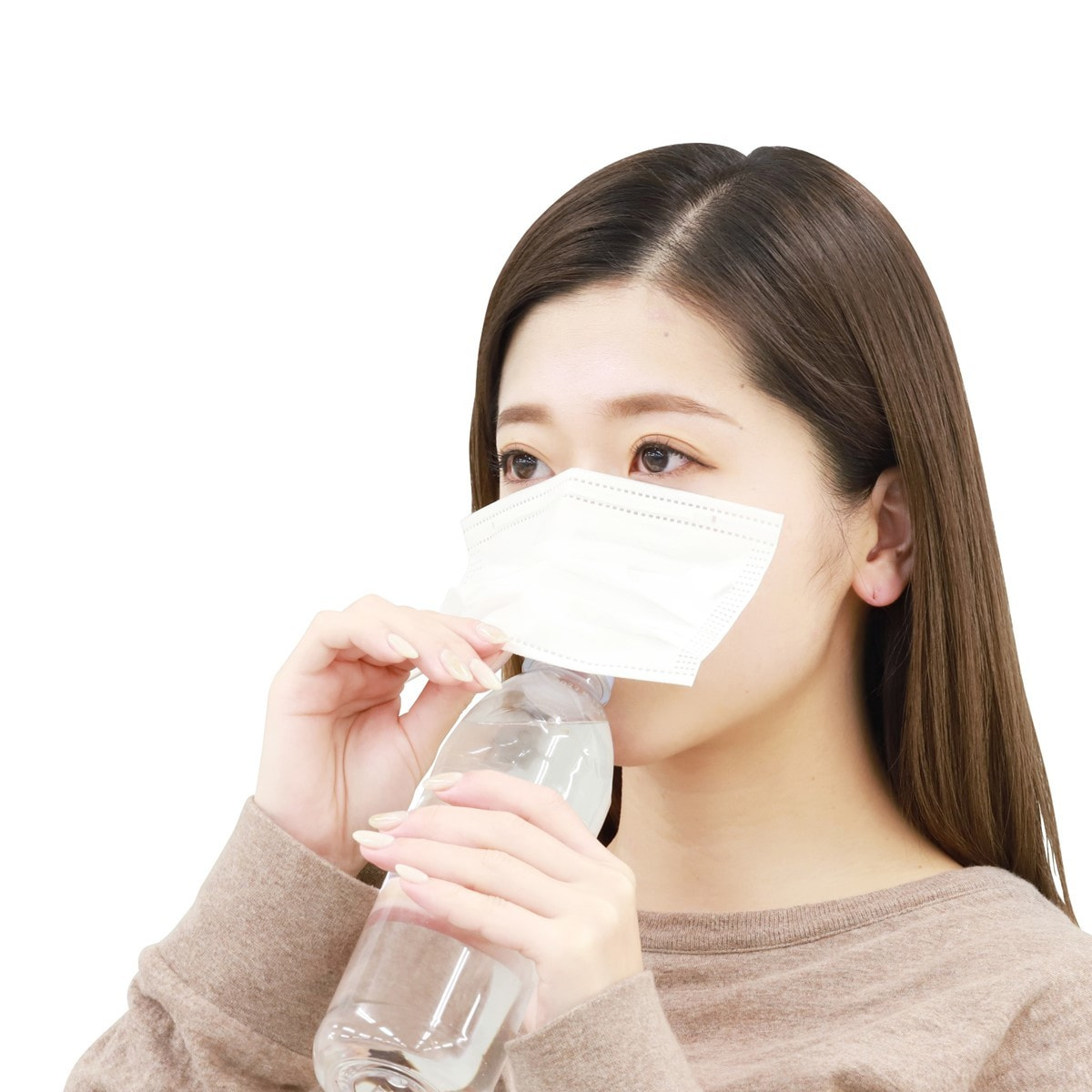 通常の不織布マスクと同形状で顔に馴染みやすく、抵抗感なくお使いいただけます。