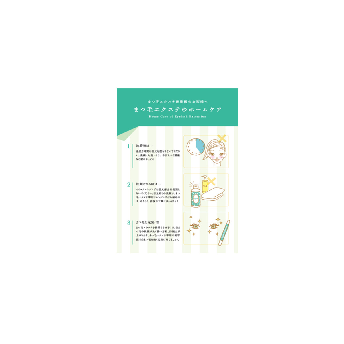 まつ毛エクステ初心者の方も、このカードを見れば施術後の扱い方がとてもわかり易いです。