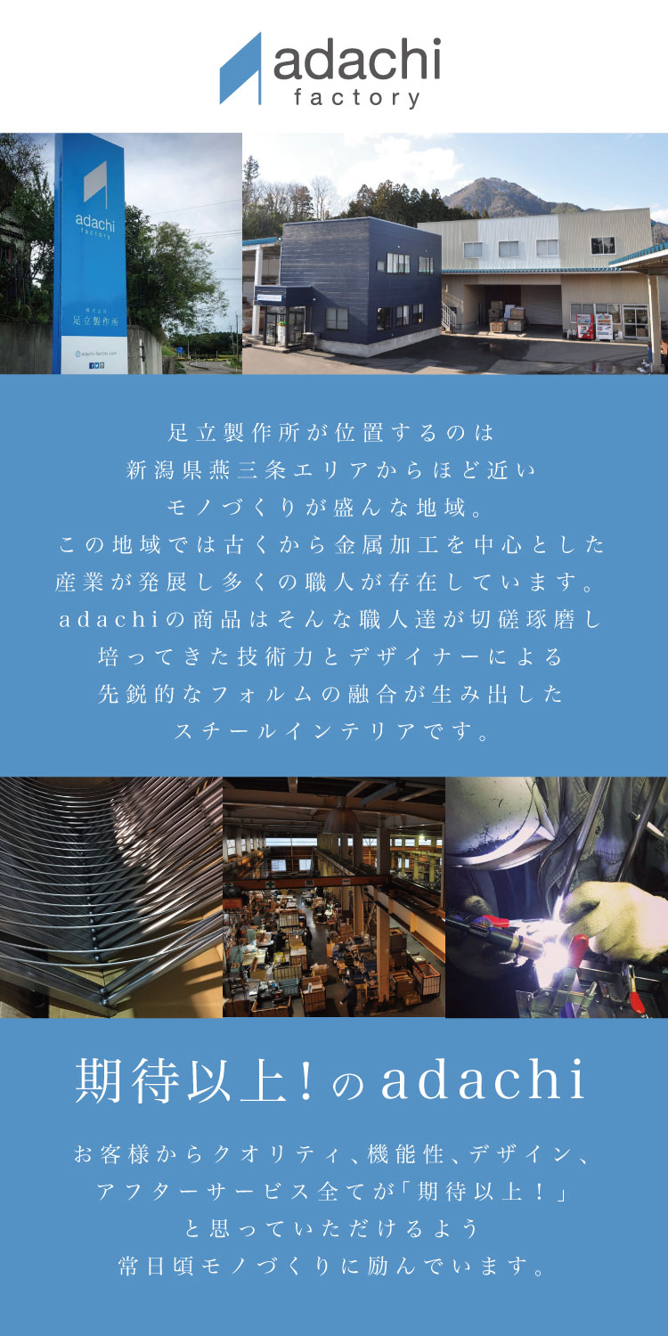 足立製作所は、サロンインテリアとしても引き立つ、スタイリッシュでシンプルなスチール収納家具を豊富に取り揃えています。