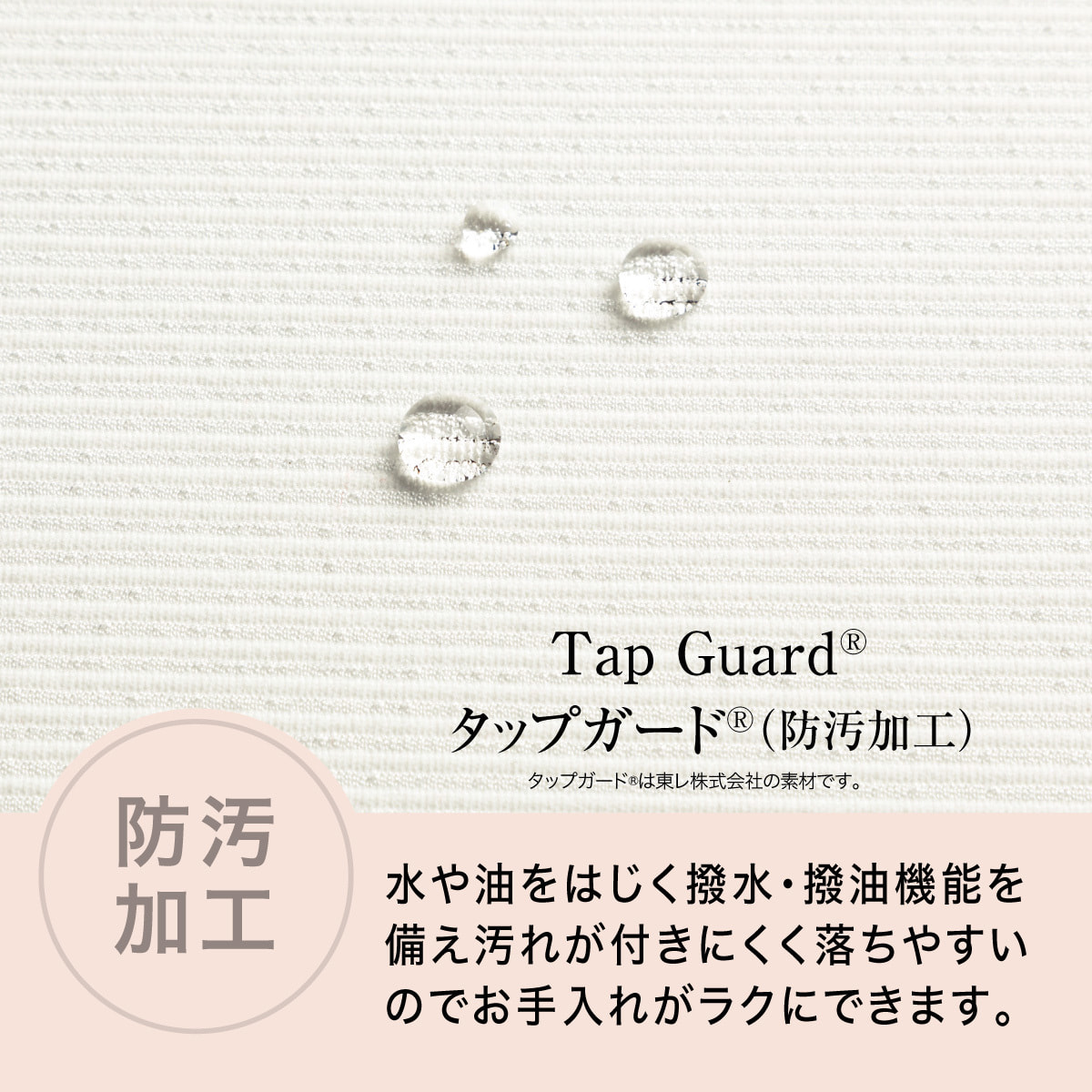 水や油をはじく撥水・撥油機能を備え、汚れが付きにくく落ちやすい防汚加工を施し、お手入れもラクなアイテムです。