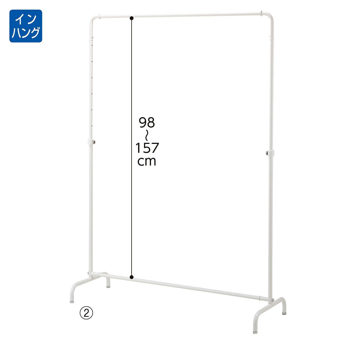 インハングタイプ ハンガーラック 丸パイプ<ホワイト>W120cm