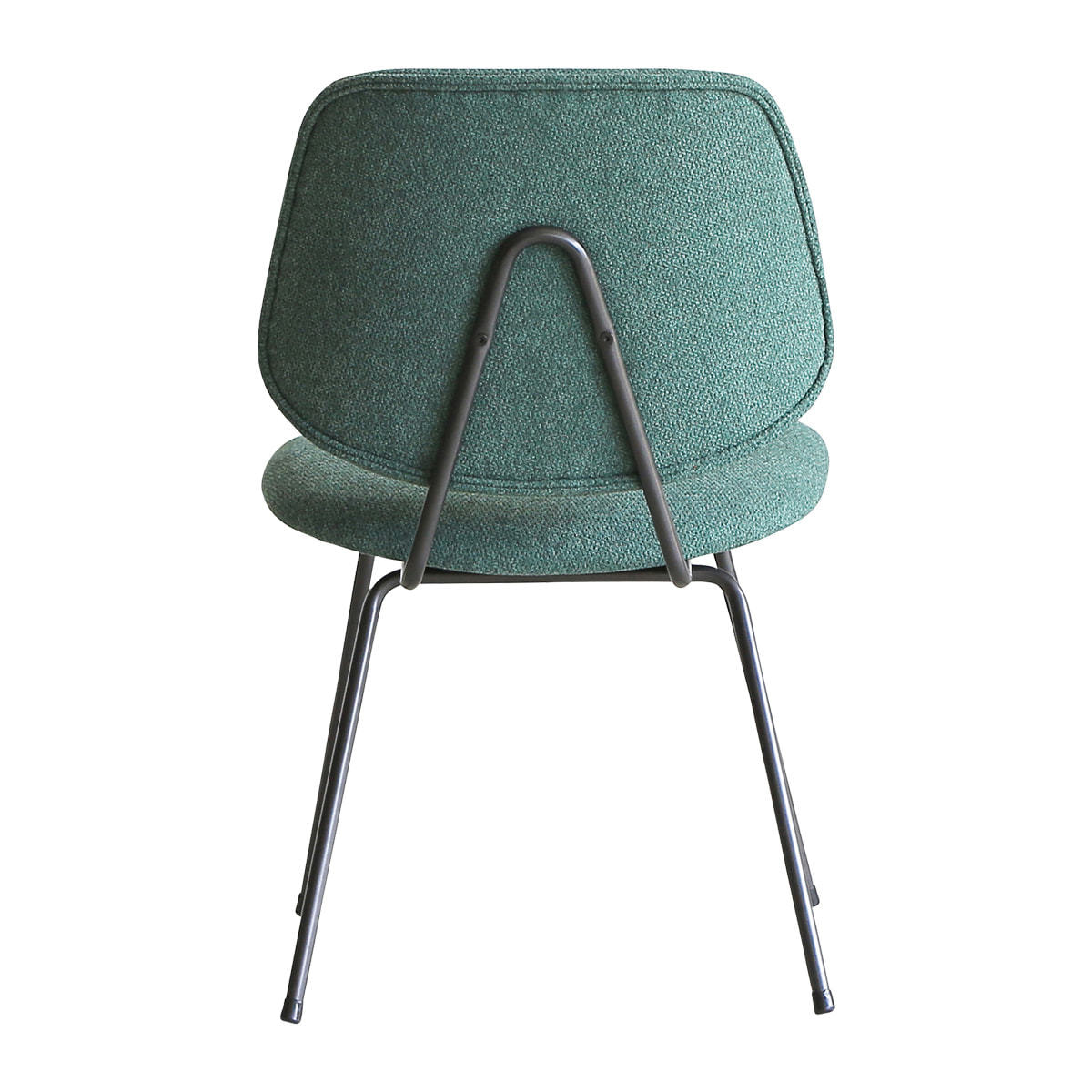 レトロかつモダンテイストのファブリックチェア。エッジの効いたスチール脚が特徴です。