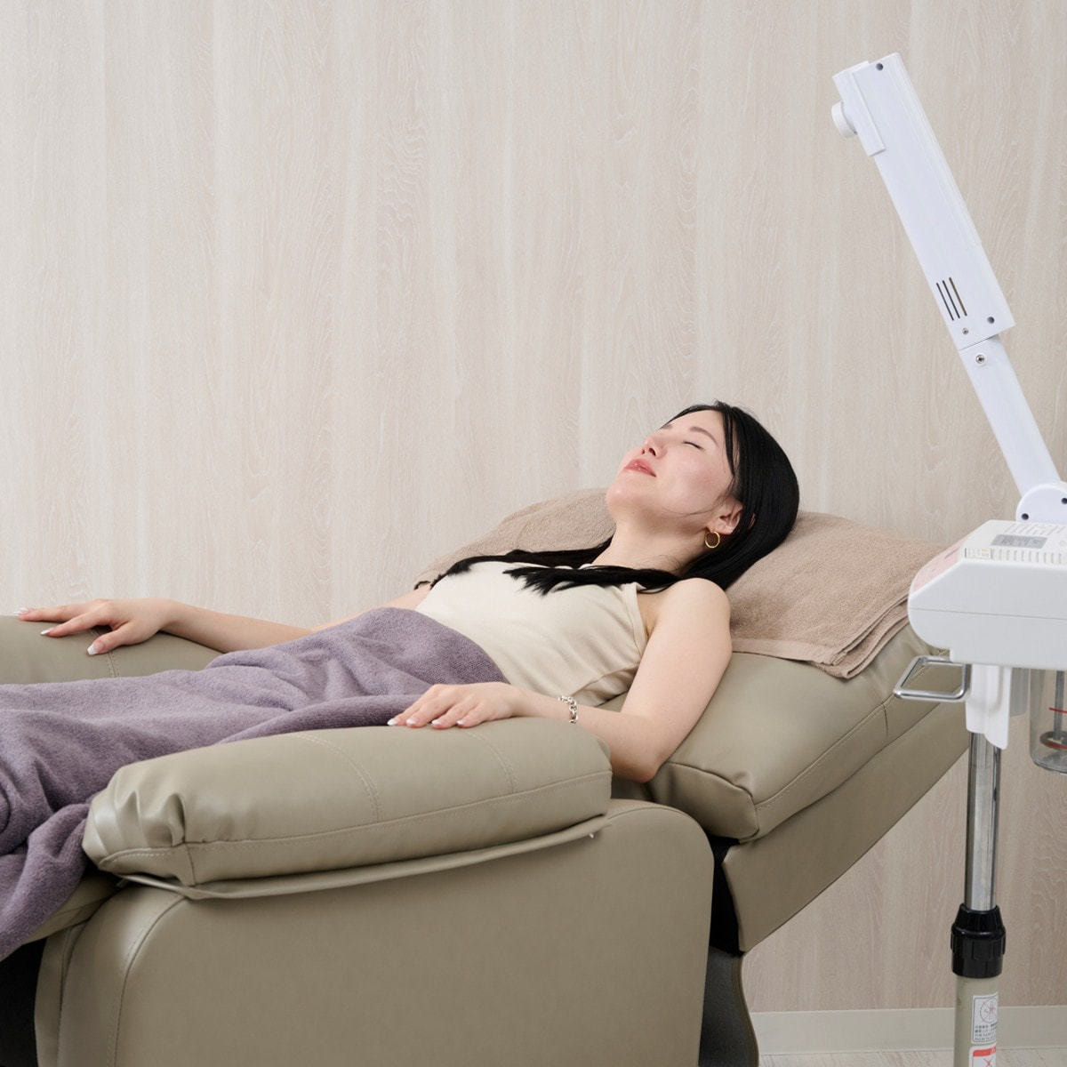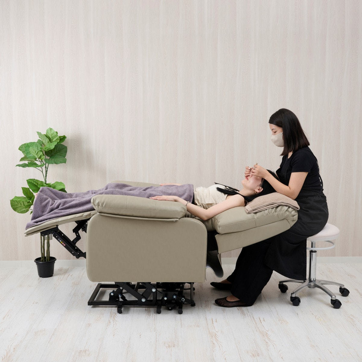 ヘッドスパやエステはもちろん、ネイルやアイラッシュの施術もさらに快適に。 ラウンジチェア一台で、サロン形態を問わず幅広いメニューに対応できます。