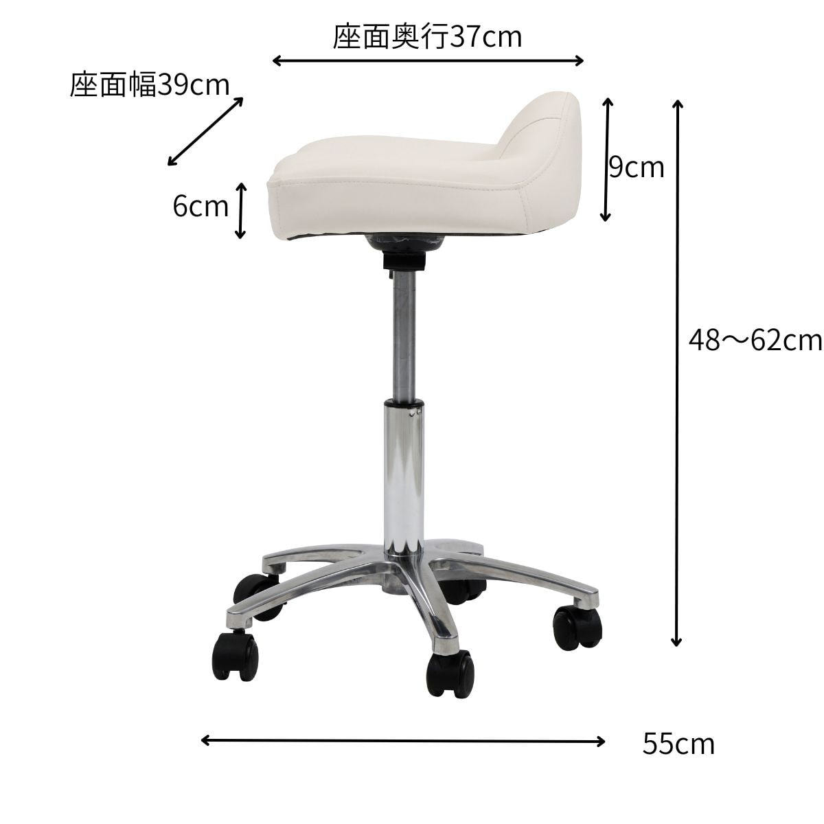 骨盤をしっかりサポートするデザインで、長時間の施術でも疲れにくいスツール。