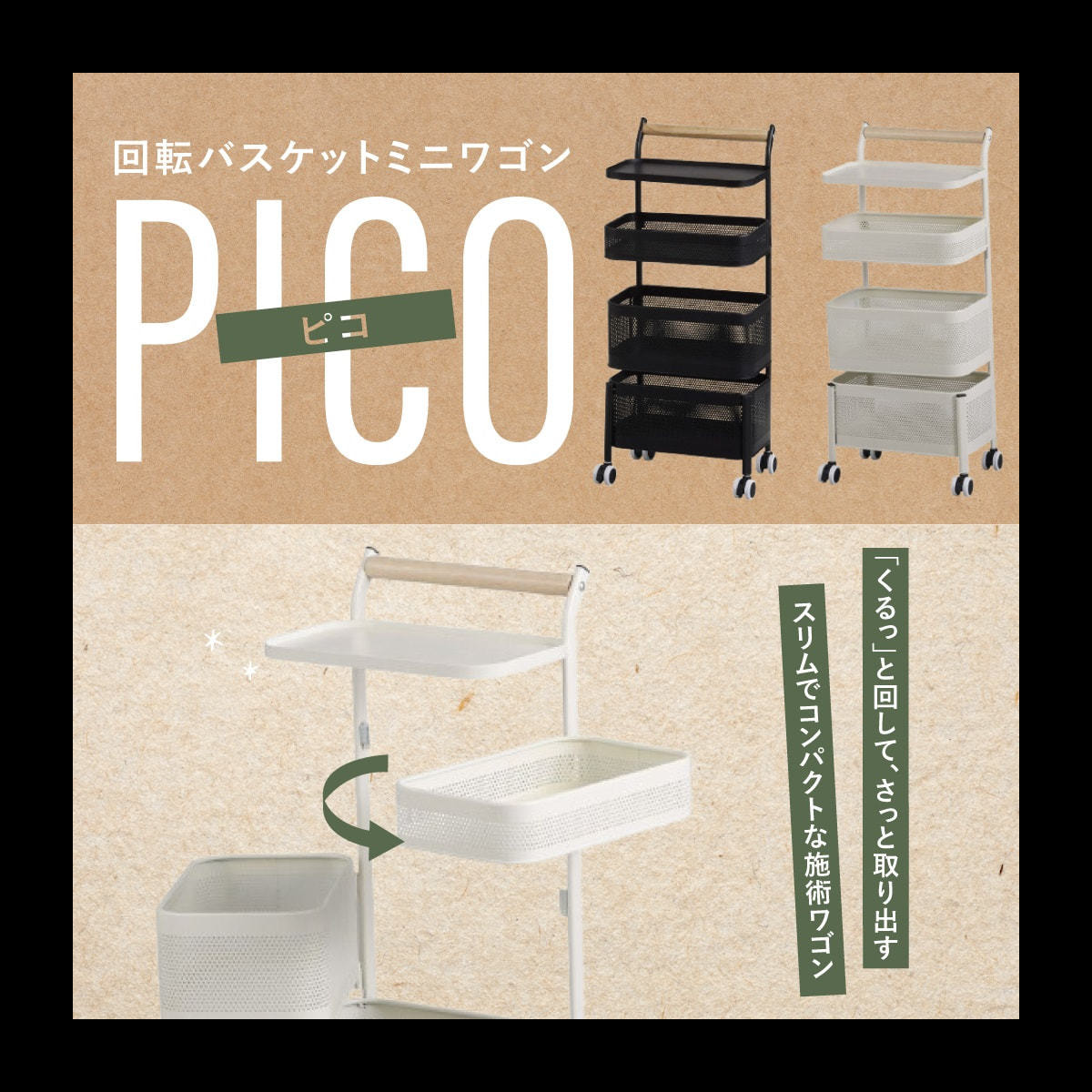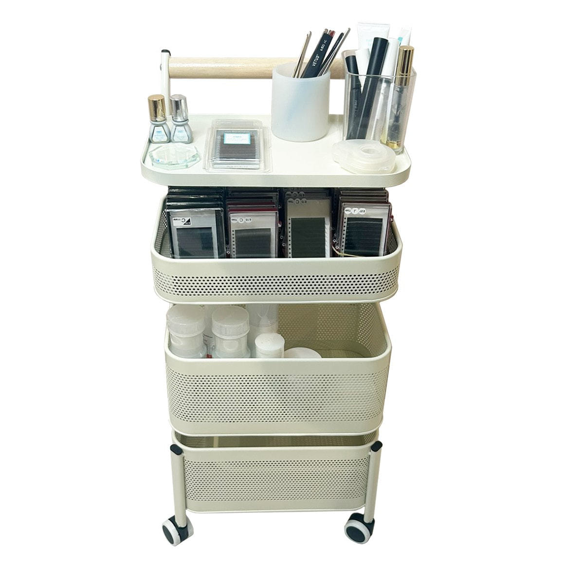 ■中央の2段は回転式バスケットで、ボトルやエクステなどの長物も収納しやすい