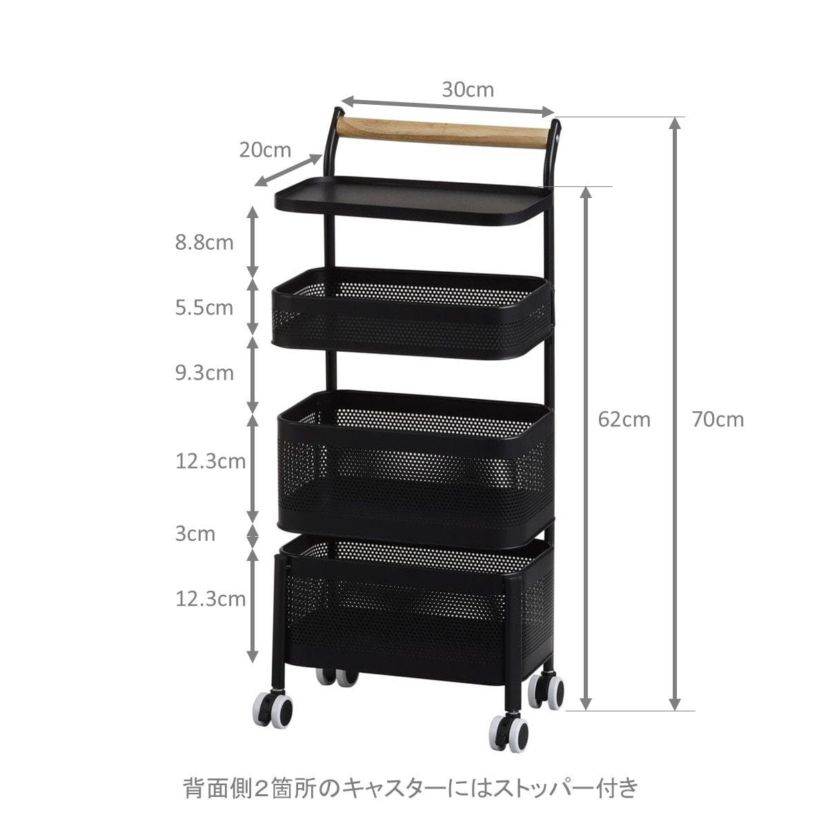 組立:組立済(中二段のバスケットは、開梱時差し込みが必要)