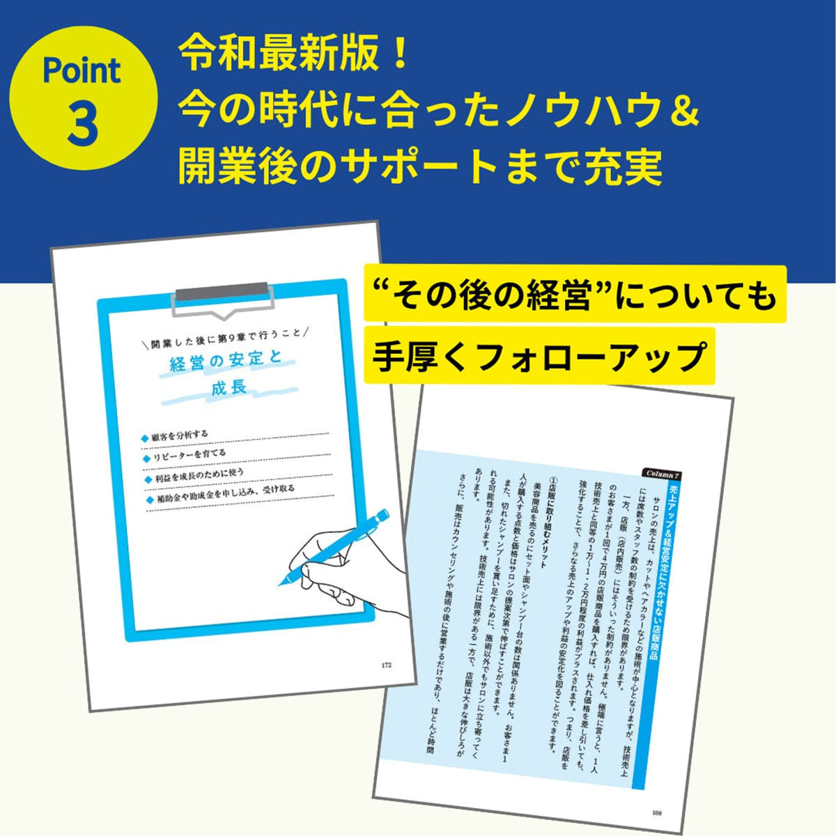 事業計画書の作成から理想の店舗選び、資金調達の秘訣、そしてオープン後の安定経営まで、美容室開業に必要なすべてが手に入ります。