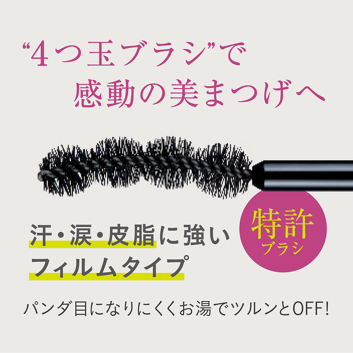 さらに、美容保湿成分を20種配合し、汗や涙に強いのにお湯でするんと落とせる処方で、まつ毛へのやさしさにもこだわりました。