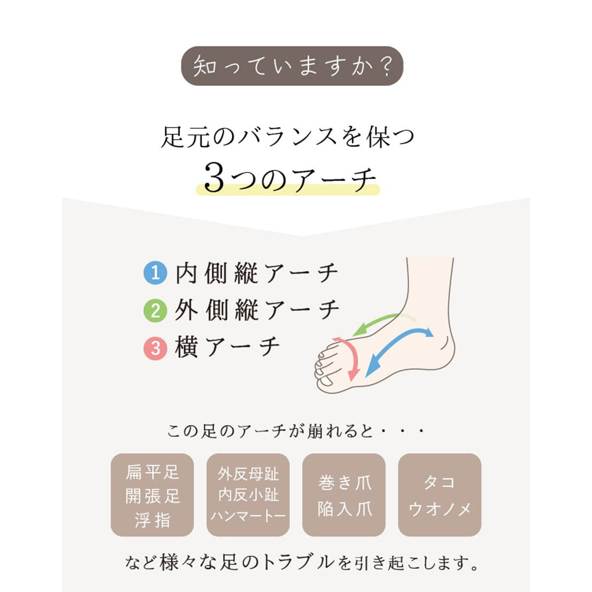 足の3点アーチを優しくサポートし、日常生活やトレーニングを