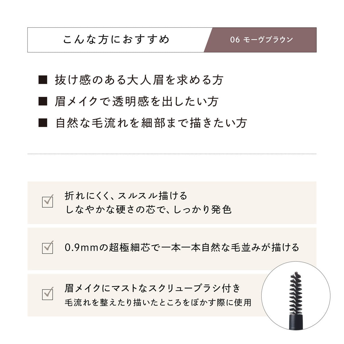 眉メイクにマストなスクリューブラシ付き。