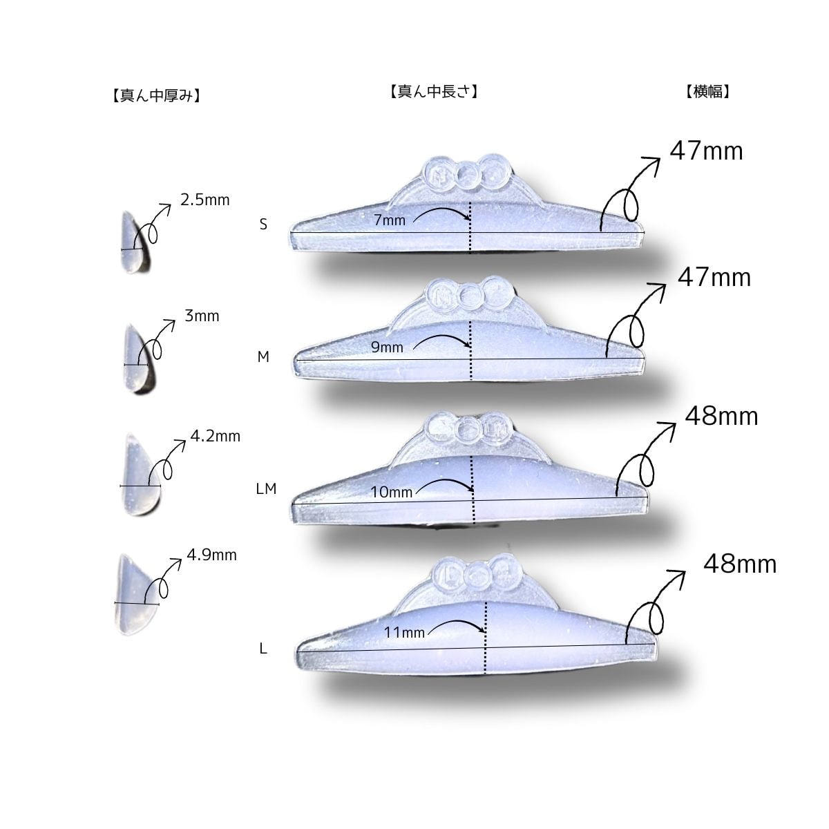 短めまつ毛や下まつ毛にも対応できる小さめサイズを含んだ4サイズセット。