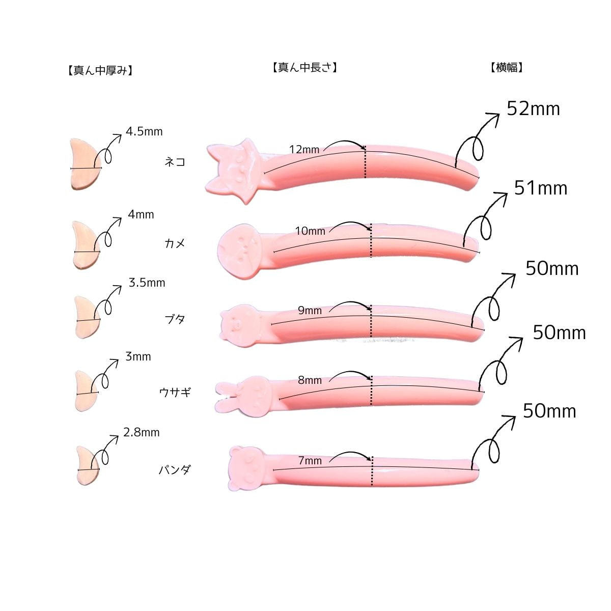 サイズは5種類。パンダ ネコ カメ ブタ ウサギ