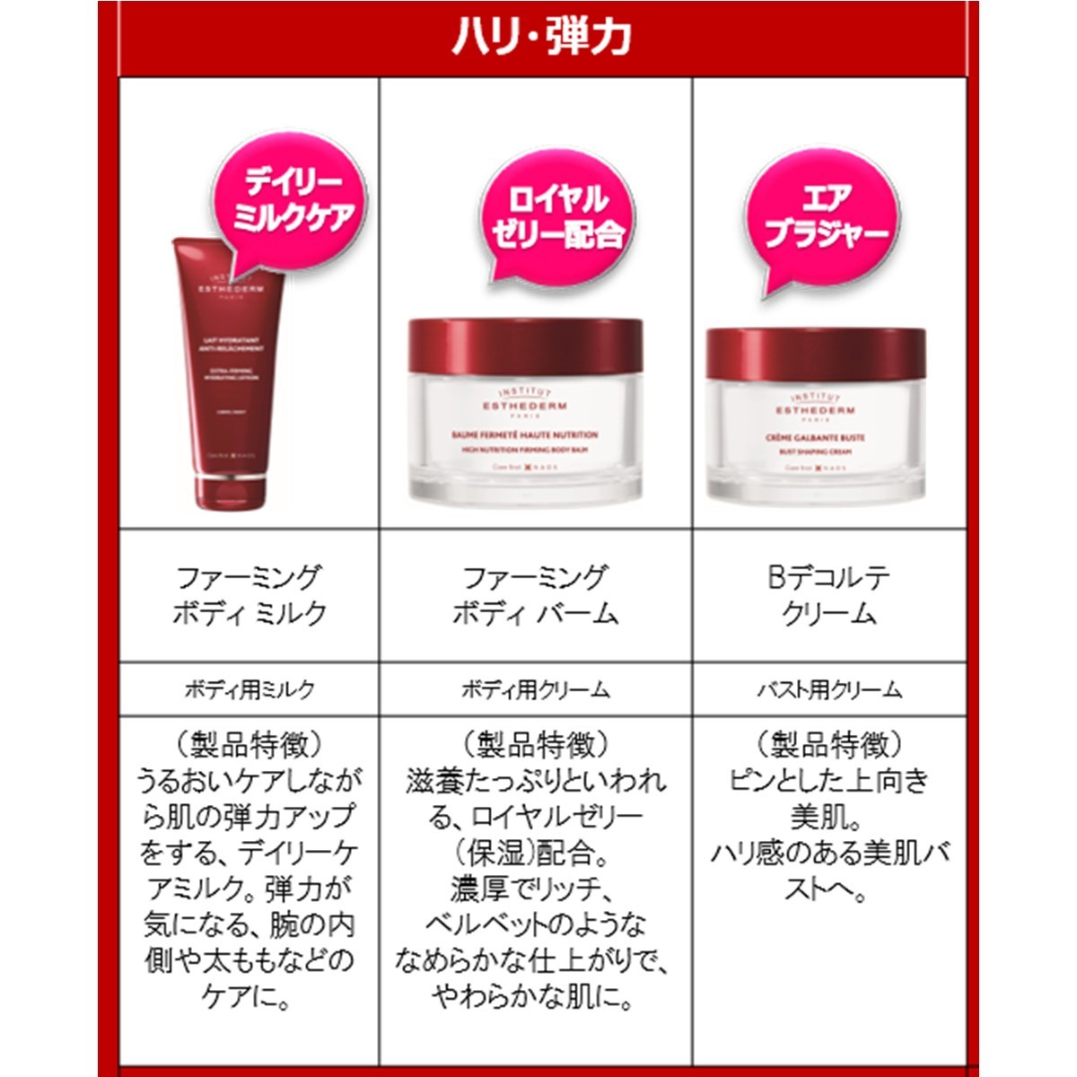 肌に潤い・油分を与え、滑らかでハリとツヤに満ちた若々しいボディに導きます。