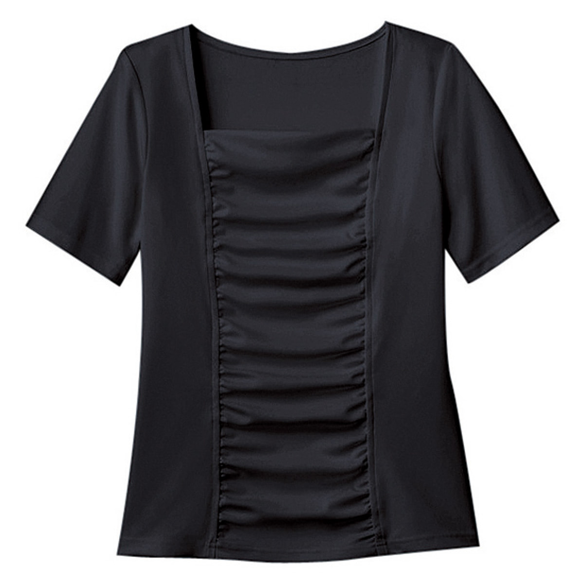 半袖ギャザーT(シアロンシルキースムース)WP318-8(L)(ブラック)