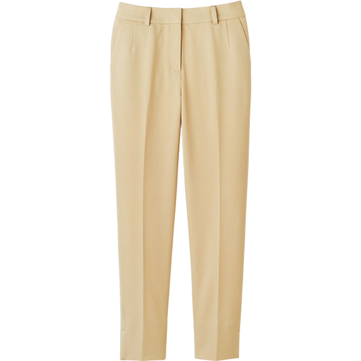 股上が深めなので屈んでも背中が出にくく、丈感と裾幅の工夫が細くて長い美脚を演出します。