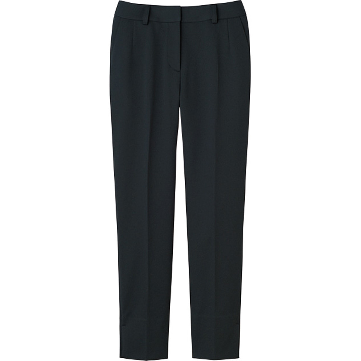 股上が深めなので屈んでも背中が出にくく、丈感と裾幅の工夫が細くて長い美脚を演出します。