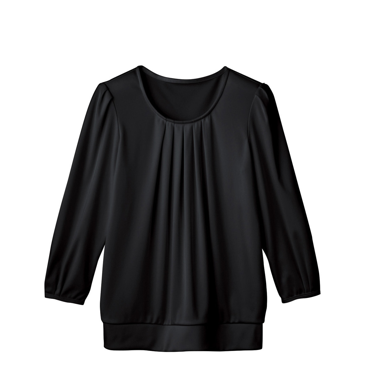 七分袖タックブラウスTWP369-8(S)(ブラック)