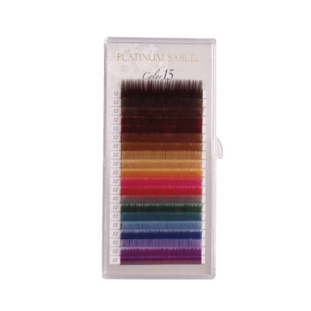 キャロット,チェリーブロッサム,パッションレッド,ミント, モスグリーン,ターコイズ,スカイブルー,ロイヤルブルー,ラベンダー,ブルーベリー:各1列