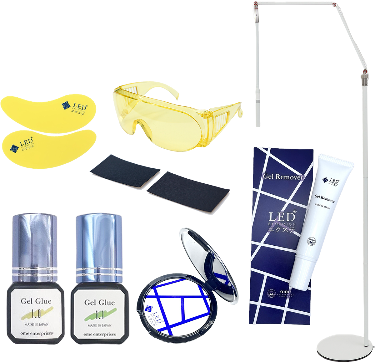 各1点 ジェルグルー1.0 bottle 4ml / ジェルグルー1.1 中粘度 bottle 4ml / LEDエクステライトⅡ / アイプロテクトゴーグル / アイプロテクトシートジェルリムーバー / グループレート / アイシート