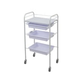 鍼灸院で使用しております。 一番上がフラットなので施術中、使用頻度の高い低周波治療器やアルコールなどを置いてます。 他の棚は手前側に引き出して使えるので、鍼を出し入れするのにとても便利です。 一番下の棚も引き出せればいいのですが、こちらが固定で手前に引き出せないなのが個人的には残念なところです。 なのであまり使用頻度の少ないものを収納しております。 キャスターは変なひっかりもなく移動もスムーズで楽です。 この度、低周波治療器を新たに1台購入したので、新たに購入する事を検討しております。