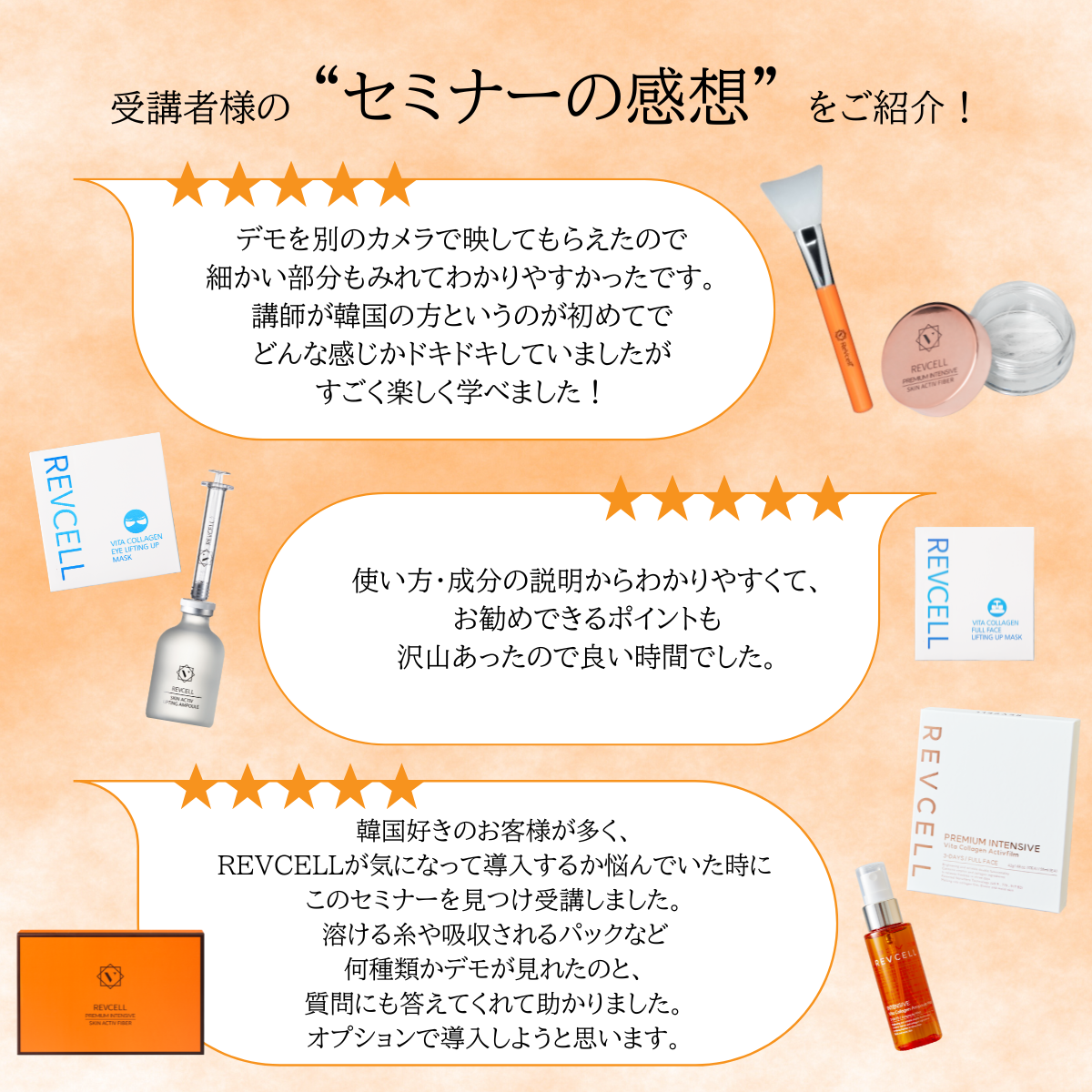 本セミナーでは、REVCELL日本代理店の韓国人講師が使い方・効能・施術ノウハウを丁寧にレクチャーします。