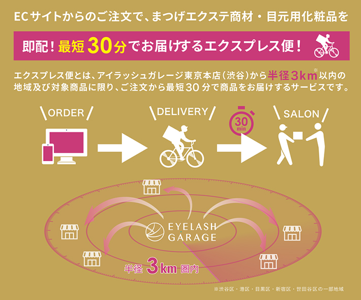EXPRESSストア 渋谷から半径3km圏内の地域に最短30分で商品をお届けする即配サービスです。